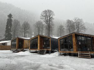 Дом в стиле барнхаус вместимостью до шести человек в самом центре горнолыжного поселка Архыз