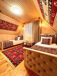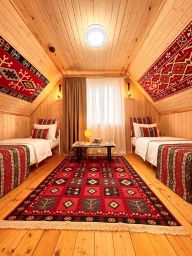 Гостевой дом "Hayat Haus" расположен в центре села Архыз. Это комфортное место для спокойного семейного отдыха в окружении гор Кавказа. В гостевом доме есть собственное кафе, общие террасы с потрясающим видом на горы, бесплатная парковка, бесплатный Wi-Fi. В шаговой доступности — рестораны, кафе и магазины. До горнолыжных трасс курорта легко добраться на автомобиле в течение 15 минут. Гостевой дом находится в непосредственной близости от центральной мечети, по утрам слышно призыв на молитву в течение 24 минут. В нашем гостевом доме соблюдаются правила, направленные на создание благоприятной атмосферы: запрещено распитие алкогольных напитков, употребление продуктов из свинины, шумные мероприятия, размещение с животными — что обеспечивает комфортный отдых для всех наших гостей. Мы с радостью организуем вам разнообразные увлекательные развлечения и экскурсии в живописном Архызе: Конные прогулки по горам, джипнг, квадро экскурсии. После насыщенного и яркого дня приглашаем вас расслабиться в банном комплексе и тёплом бассейне наших партнёров — это отличный способ восстановить силы и насладиться отдыхом.