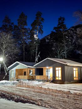 Коттеджи у озера Кара-Кёль — уютные одноэтажные дома в горах, идеально подходящие для спокойного семейного или дружеского отдыха. В каждом доме — одна спальня и просторная гостиная, совмещённая с кухонной зоной; размещение — до 5 человек (двуспальная кровать в спальне + раскладной диван и дополнительное спальное место). Интерьер аккуратный, с натуральными материалами и продуманной планировкой — всё для комфортного отдыха после прогулок по горам. Кухня полностью укомплектована: плита, духовка/микроволновка, холодильник, электрический чайник, набор посуды и столовые приборы. Для вашего удобства есть Wi-Fi, телевизор, утюг и фен. На территории — парковочное место, благоустроенная веранда с видом на озеро и лёгкая зона отдыха на свежем воздухе. Рядом — Тебердинский заповедник и пешеходные тропы, а до озера — прогулка пешком.