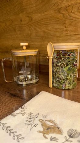 Кухонная зона (холодильник, микроволновая печь, газовая плита, чайник, турка, вся необходимая посуда и даже горный чай);