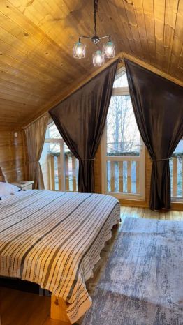 Огромная веранда, где на свежем воздухе можно завалиться в "коконы", выпить утренний кофе или накрыть стол, имеется мангал с принадлежностями, крытая беседка на случай дождя, костровая зона
