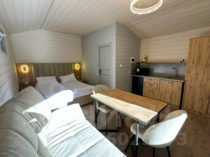 Кухонная зона оборудована рабочей поверхностью, мойкой, шкафами, мини-холодильником, микроволновой печью и электрическим чайником.
