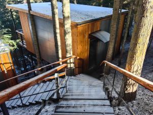 Важно: к домикам ведут лесные ступеньки. Это небольшое усилие стоит того - именно оно обеспечивает абсолютное уединение и уникальные виды.