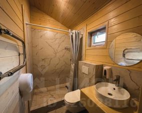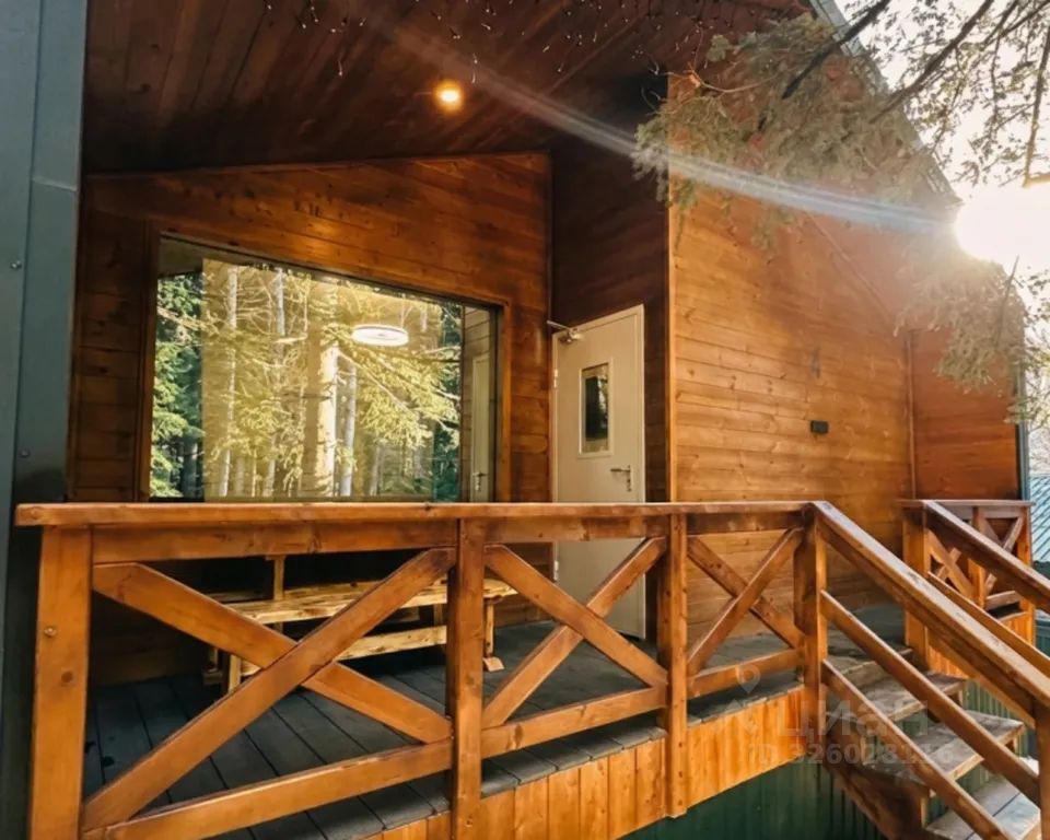 Внутри — просторный и светлый домик с деревянной отделкой.