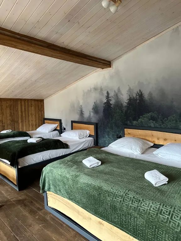 Двухэтажный дом для 6-7 гостей с панорамной стеной и видами на горы