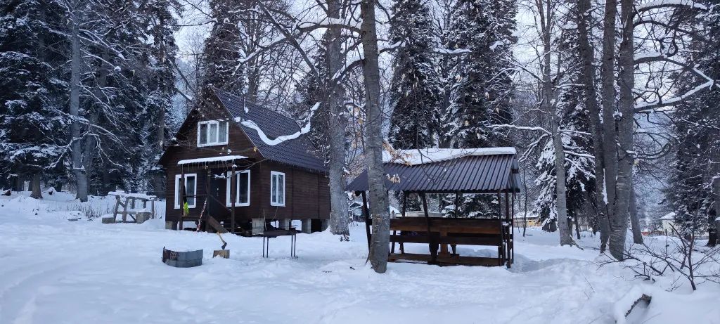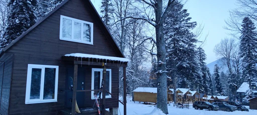 База "седьмое небо" сдается домик на 10 человек с тремя отдельными спальнями! Внизу хол, в холе зона отдыха, кух зона, смарт тв, вай фай, сан узел и одна спальня. На верху две спальни. 10 спальных мест. Стиральная машина. Электрическая плита 4х комфорная с духовкой. На улице мангальная зона, беседка. Есть баня на дровах! Находимся в самом поселке, по банковской улице. 10 минут пешком до центра архыза! В 500 метрах есть лыжня с бугелем. Дорога асфальт до участка можно проехать в любую погоду! На одни сутки не сдаем!