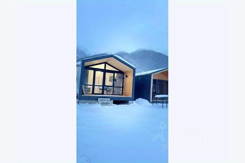 В доме 2 комнаты: спальня с двуспальной кроватью и кухня-гостиная с двуспальным диваном, обеденной зоной и TV.