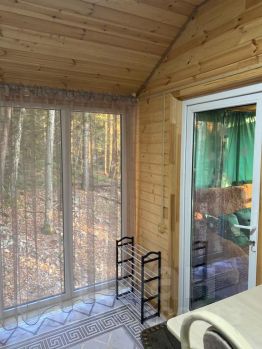 Просторная, светлая, с мягким диваном и столиком; шторки создают уединение и комфорт в любую погоду.