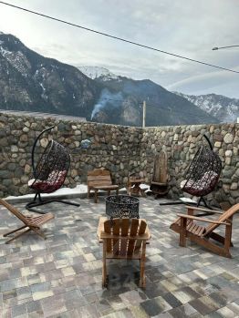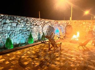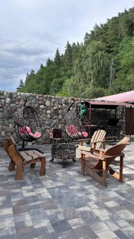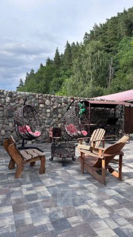 - Костровая чаша и вокруг стоят деревянные кресла и кресла-качалки (можете пожарить вкусный зефир на палочке )