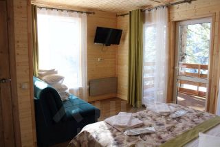 Гости могут забронировать номера категорий Стандарт и Улучшенный, а также отдельные коттеджи. В каждом номере есть удобная кровать, телевизор, холодильник, чайная станция, шкаф, собственная ванная комната с гигиеническими принадлежностями. В коттеджах оборудована кухонная зона с техникой и набором посуды для приготовления пищи.