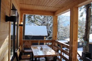 На территории есть все необходимое для приятного отдыха: русская баня, беседки с мангальной зоной, высокоскоростной Wi-Fi, детская площадка. В зимний период работает прокат снаряжения, открыта комната для хранения и курсирует трансфер до подъемников.