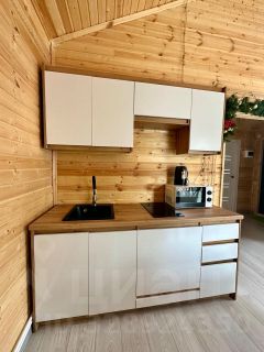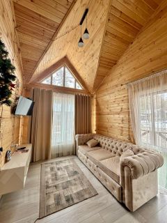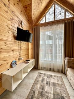 Улучшенный коттедж со своей террасой. Рассчитан на проживание от 4 до 6 человек, имеет две отдельные комнаты , где одна из комнат располагает двуспальной кроватью, другая раздельными односпальными кроватями, в количестве 2 шт. Общая кухня гостиная с выходом на террасу. На террасе есть садовая мебель (стол+4 стула) и кресло-кокон. Внутри дома есть все необходимое для комфортного проживания. Кухня включает в себя индукционную плиту, холодильник, микроволновую печь, посуду и принадлежности для приготовления пищи. В зоне гостиной расположен диван и ТВ с доступом в интернет, WiFi на всей территории. Также в коттедже совмещённый санузел с душем и туалетом.