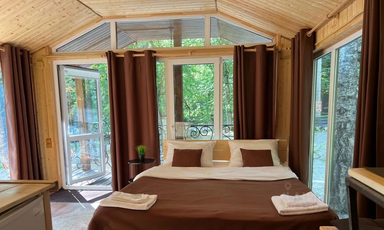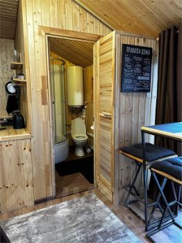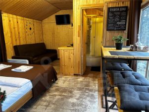 Оснащение домика: двухспальная кровать, раскладной диван, оборудованная кухня, собственная ванная, косметические принадлежности, фен, телевизор, холодильник, чайник, обеденный стол, микроволновая печь, стабильный высокоскоростной (100Mbit) интернет по Wi-Fi, душевая кабина.