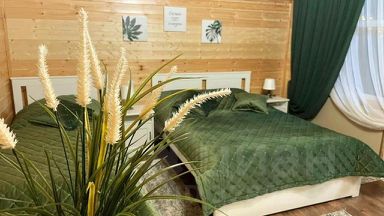 Шале со всеми удобствами с видом на горы и поселок. Имеется собственная ванная комната. Оснащение: 1 двуспальная кровать, 1 односпальная кровать, шкафы и тумбы для хранения одежды. Есть терраса, телевизором и Wi-Fi.