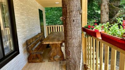 Уютный Дуплекс с видом на горы рассчитан на проживание 11 человек, оснащён 1 двуспальным диваном,2 односпальной кроватью,2 двуспальной кроватью и (1-двус, 1-однос).Имеется комфортная ванная комната, телевизор, Wi-Fi, антимоскитная сетка, отопление, шкаф, холодильник, СВЧ, чайник, постельное белье, полотенца, мыло, обеденный, рабочий, журнальный стол, стол, стулья, кухня в номере, посуда, столовые приборы и электричеcкая плита.