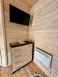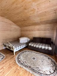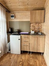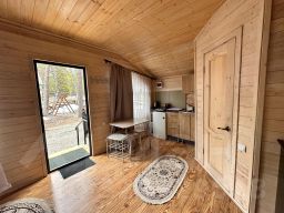 Коттедж для отдыха семейной пары или пары с детьми. Коттедж оснащен двуспальной кроватью. Есть кухонная зона. Включает в себя газовую плиту, холодильник, посуду и кухонные принадлежности. В коттедже есть телевизор, интернет, беседка и мангальная зона. Совмещенный санузел.
