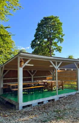 На территории 3 домика по 50кв, оборудованные всем необходимым для проживания + 1 технический домик 24кв