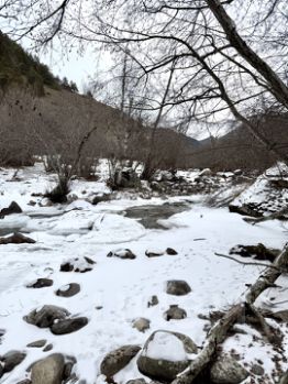 Расположен в самом сердце Теберды, чем отличается от других предложений курорта своим лучшим местонахождением у самого подножия гор с выходом на реку Джемагат.