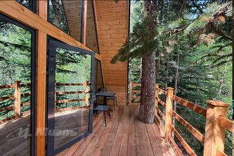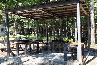 Территория оборудована деревянными дорожками, двумя мангальными зонами, крытой смотровой площадкой со столиками, парковкой, детской площадкой с батутом и мини-городком. Все просматривается наружными камерами наблюдения для безопасности.
