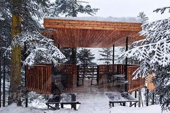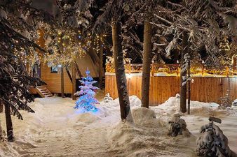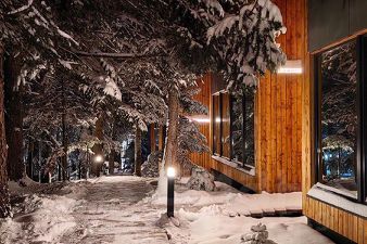 Местоположение очень удачное, между селом Архыз и Романтиком, на котором расположен сам горнолыжный курорт, в 400 метрах от основной трассы, в пихтовом лесу. Подъездной путь к отелю хороший.