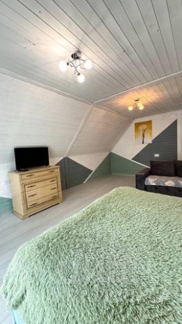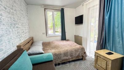 Двухэтажный дом с 3 спальнями, 2 санузлами и кухней, вместимостью до 12 человек. Площадь 80 кв. м + 15 кв. м терраса.