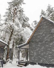 На базе 4 двухэтажных дома с двумя спальнями и кухней, вместимостью до 10 человек. Площадь 67 кв. м + 18 кв. м. терраса