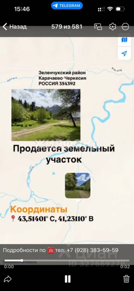 Продается земельный участок коммерческого назначения площадью 2 ГА в селе Архыз в курортной зоне на