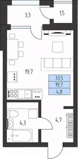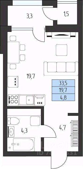Жилая площадь19,7 м²