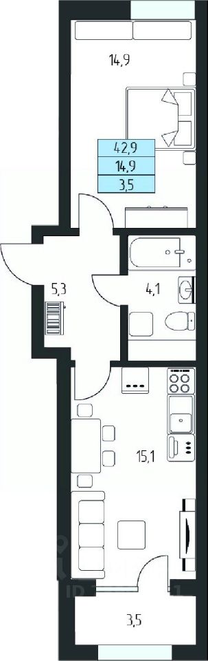 Жилая площадь14,9 м²