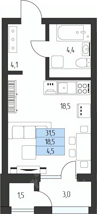 Жилая площадь18,5 м²