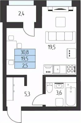 Жилая площадь19,5 м²