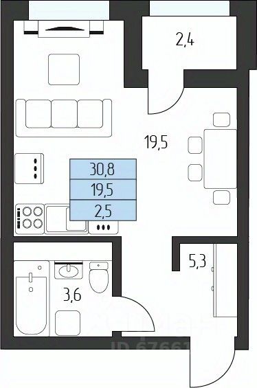 Жилая площадь19,5 м²