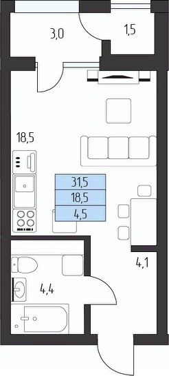 Жилая площадь18,5 м²