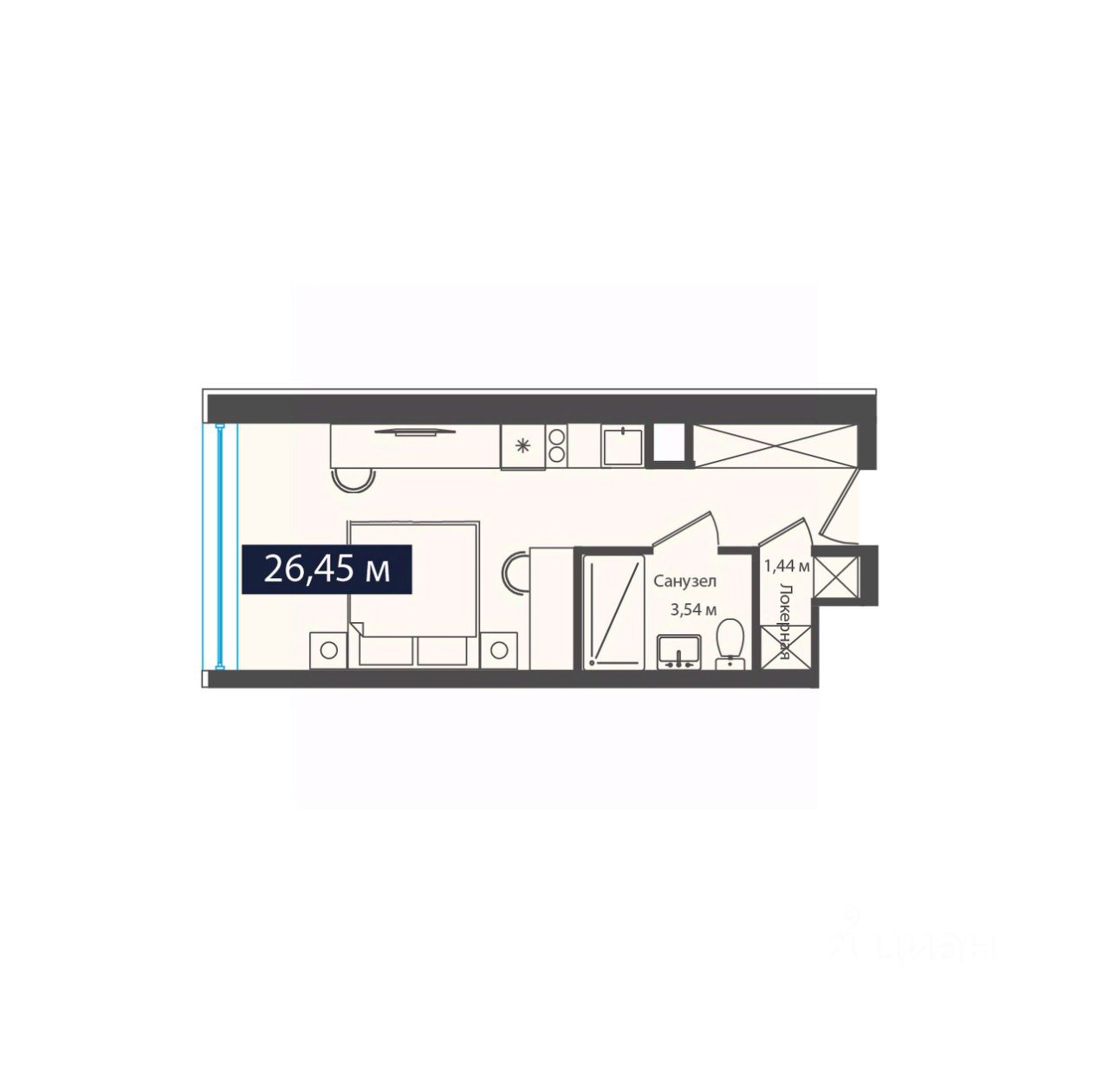 Общая площадь26,45 м²