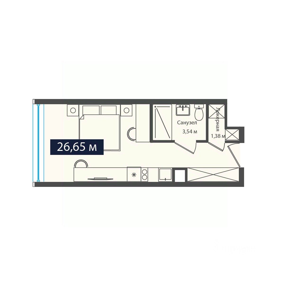 Общая площадь26,65 м²