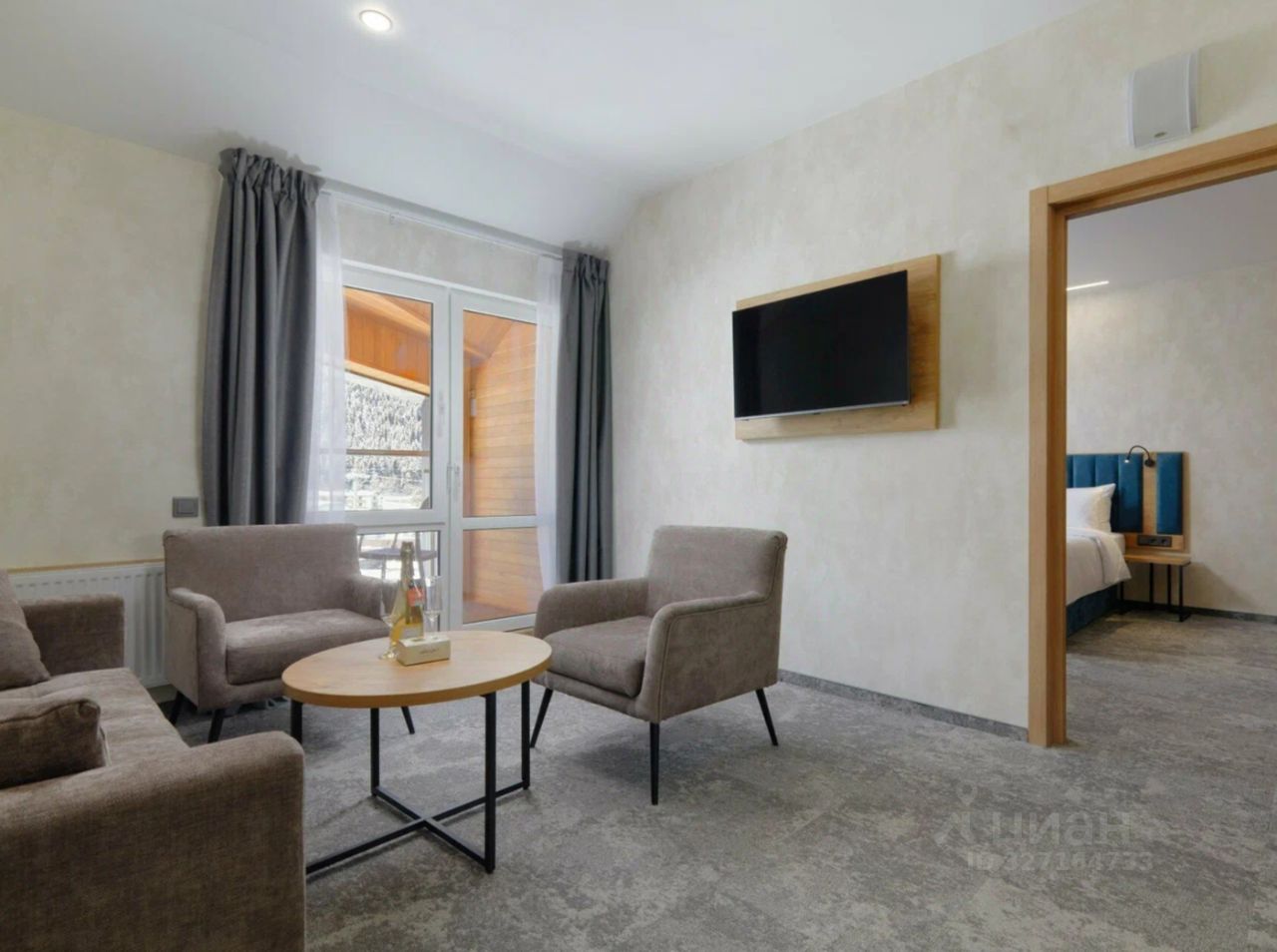 2-комнатный апартамент с двумя изолированными спальнями, гостиной и открытым балконом с панорамным видом на горы — готовое решение для отдыха и инвестиций в одном из самых перспективных горных курортов России.