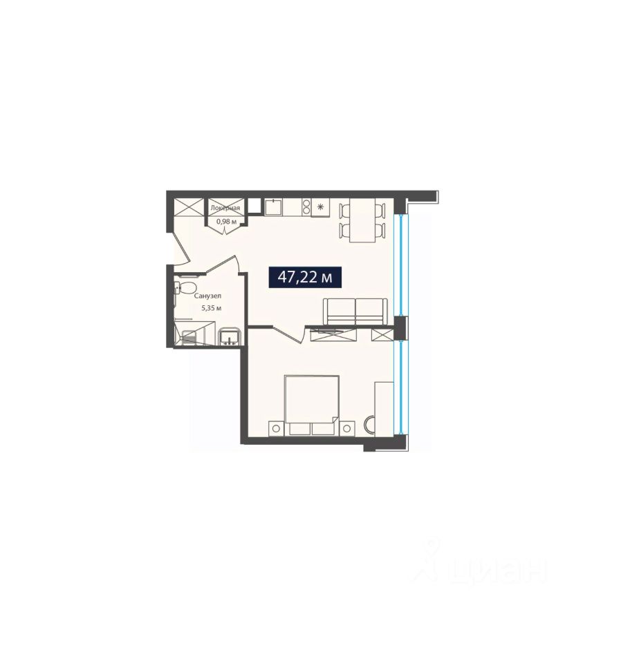 Общая площадь47,22 м²