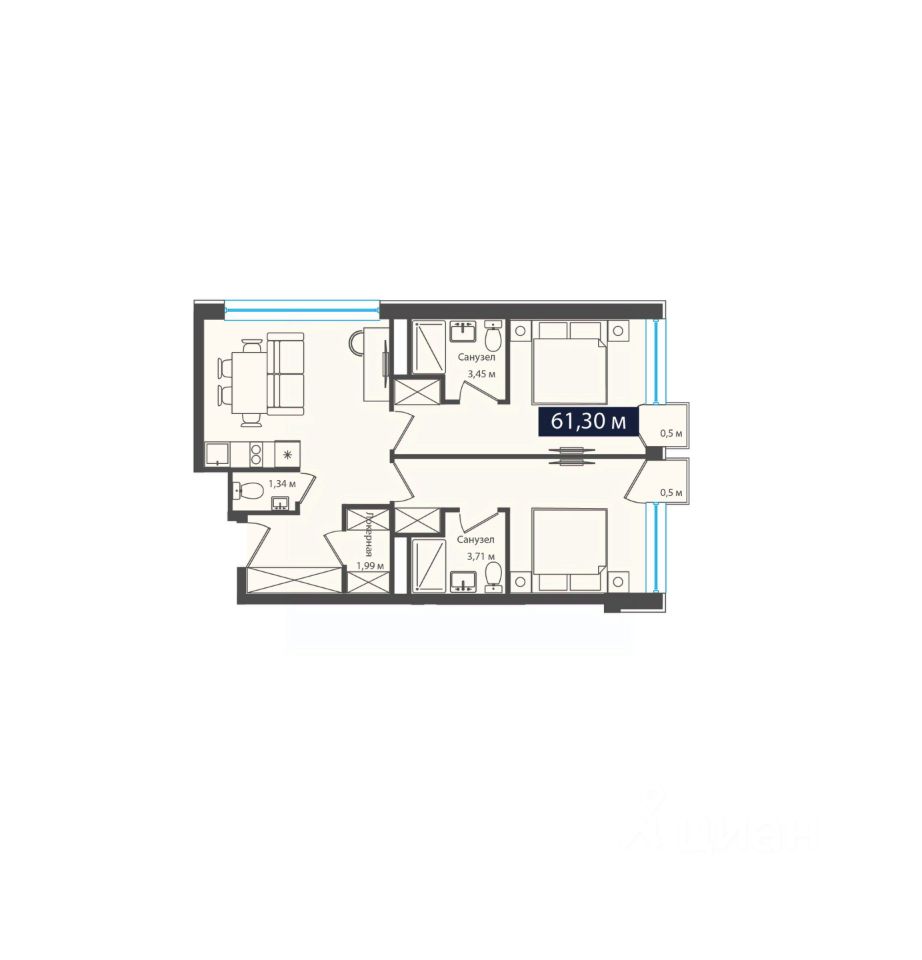 Общая площадь61,3 м²
