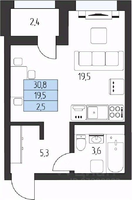 Общая площадь29,6 м²