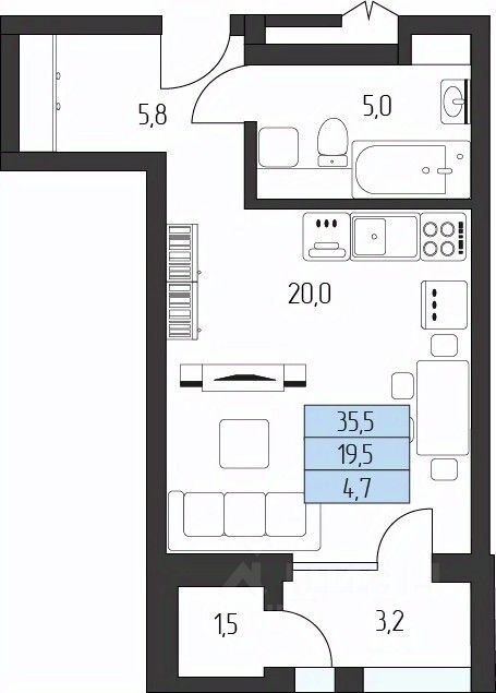 Общая площадь32,85 м²