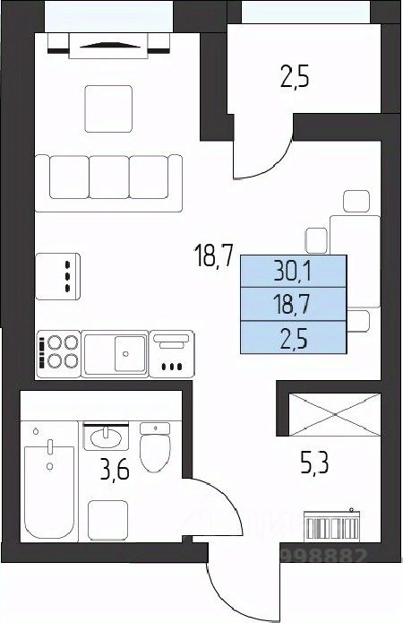 Общая площадь28,85 м²