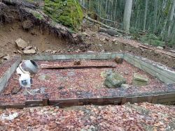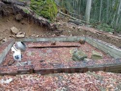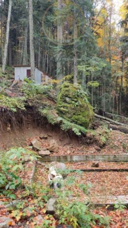 - град план, порубочный лист, выделена точка в россетях, подведена труба водопровода, фундамент под гостевой дом, каркасный домик 28кв.м. практически готовый.