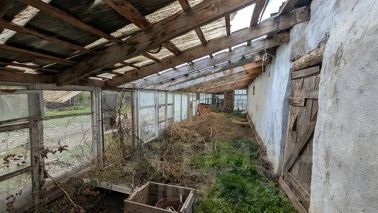 Плюс огромная оранжерея - теплица, плюс большой сарай на участке. Есть и баня на участке.