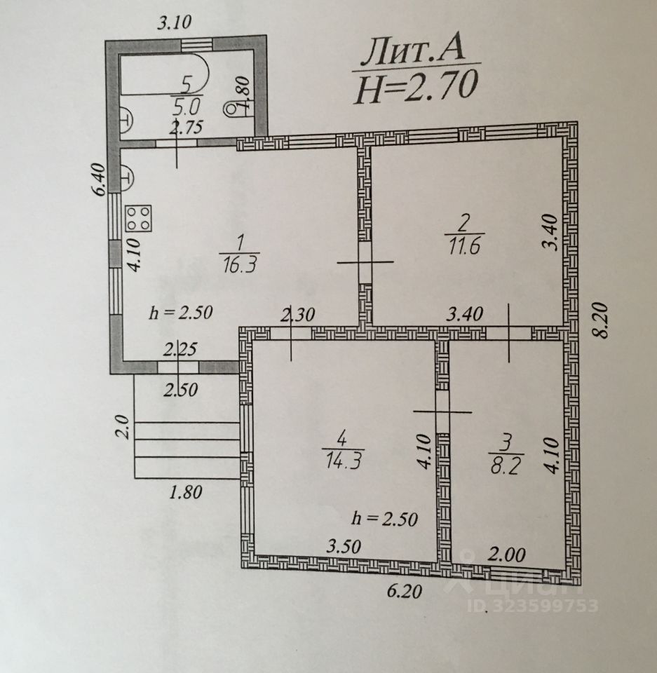 1 дом (Лит.А)площадью(55,4кво