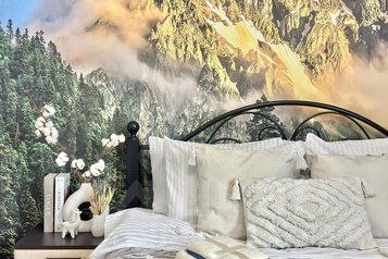 Большая двуспальная кровать с ортопедическим матрасом + раскладной двуспальный диван. Плотные шторы блэкаут для крепкого сна после активного дня на склонах. Smart TV, Wi-Fi — всё для вашего досуга в квартире/апартаментах Домбай.