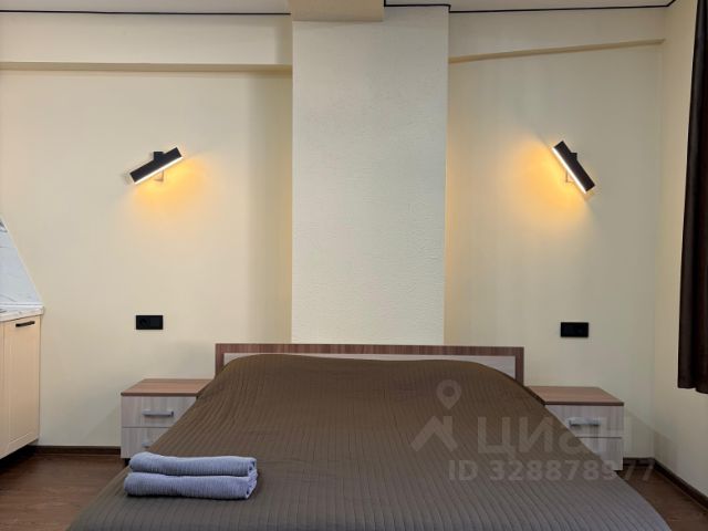 В комнате двуспальная кровать (160см) и раскладной диван (160см), шкаф.