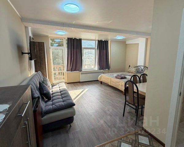 Квартира студия на 10 этаже в комплексе Вершина, Домбай центр. Завораживающий вид из окна. Квартира чистая, светлая, теплая. Есть все необходимое для комфортного проживания включая посуду, микроволновку, чистое постельное белье, средства гигиены, полотенца, тапочки и тд. Утюг по запросу предоставляются в любое время. Вместимость: 3 взрослых и 1 ребенок до 10 лет. С доплатой можно и с животными, но только с маленькими. Есть подземный паркинг за дополнительную плату.