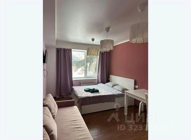Уютная студия в самом центре Домбая в комплексе Вершина! Подъёмник в 2 минутах ходьбы. Магазины, банкомат, кафе, джип туры - все рядом 1-2 минуты. 10 этаж, потрясающий вид на горы. Постельное белье, полотенце, тапочки и средства гигиены на каждого гостя. Есть трансфер с аэропорта, вокзала (за отдельную плату). В самой Вершине есть Ресторан Бизон, бассейн с подогревом, аптека, бильярд, кабинет массажа и т.д. С животными ниже колена можно (мелкие породы), но за дополнительную плату. ,
