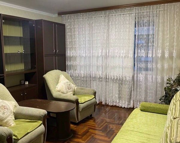 Гостиная совмещена с кухонной зоной, на кухне есть электрическая плита ,СВЧ ,духовой шкаф ,посуда для приготовления пищи,предусмотрено все для комфортного пребывания. В гостиной также имеется раскладной двуспальный диван,комод ,журнальный столик ,стол тумба под телевизор ,телевизор