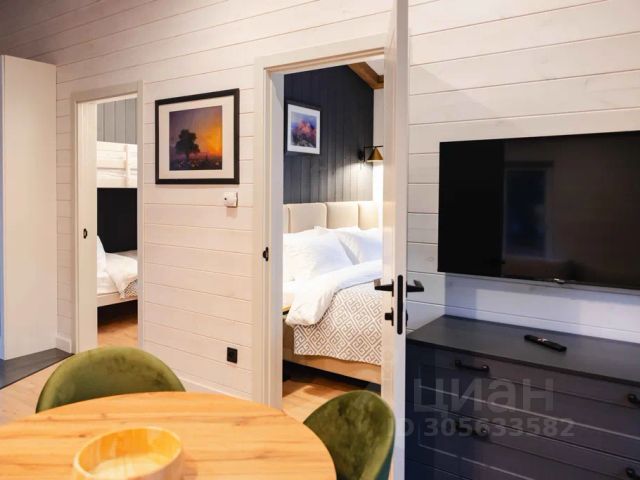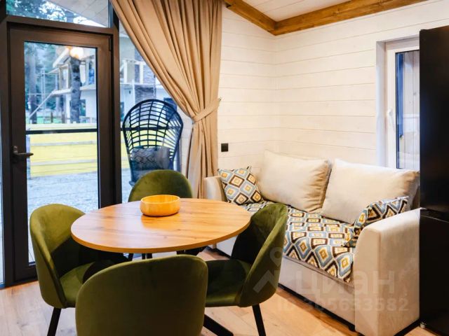 Гостиная совмещена с кухонной зоной. В гостиной также имеется раскладной двуспальный диван.